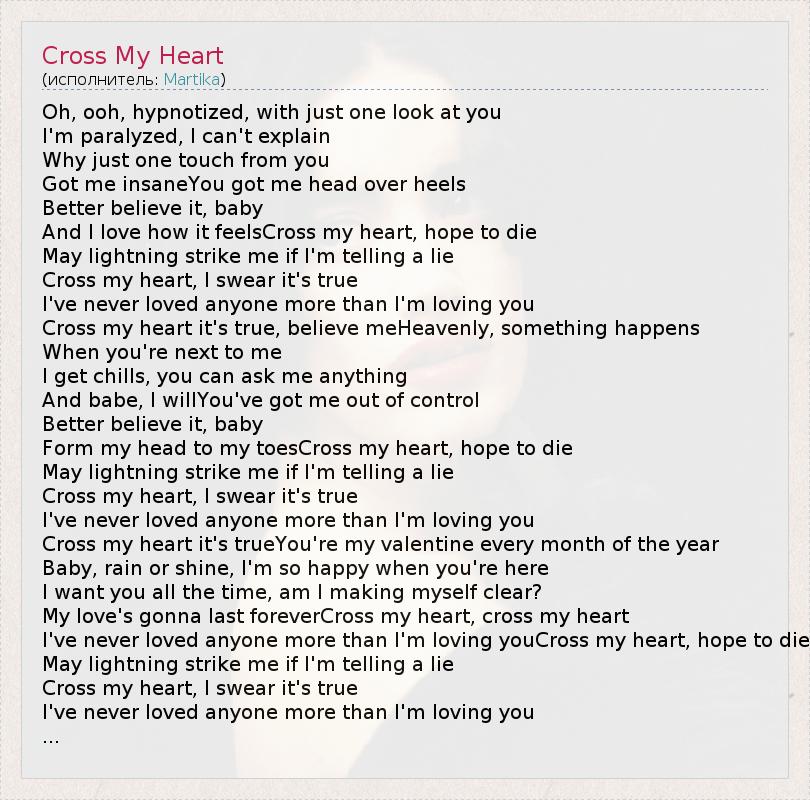А как ты думаешь, о чем песня "Cross My Heart" ?