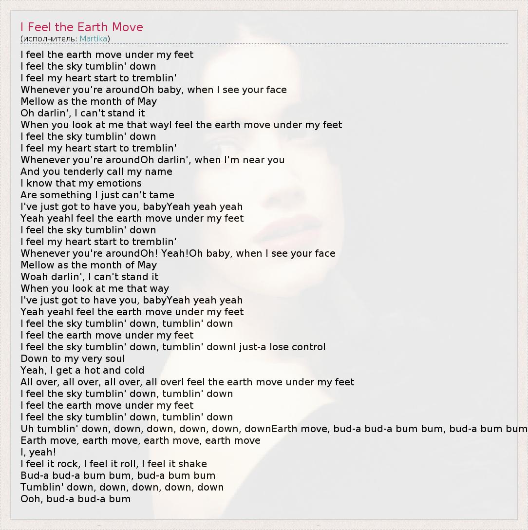 А как ты думаешь, о чем песня "I Feel the Earth Move" ?