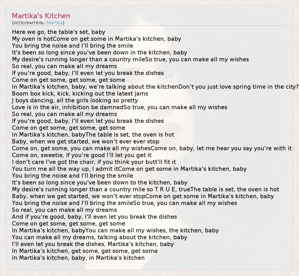 А как ты думаешь, о чем песня "Martika's Kitchen" ?