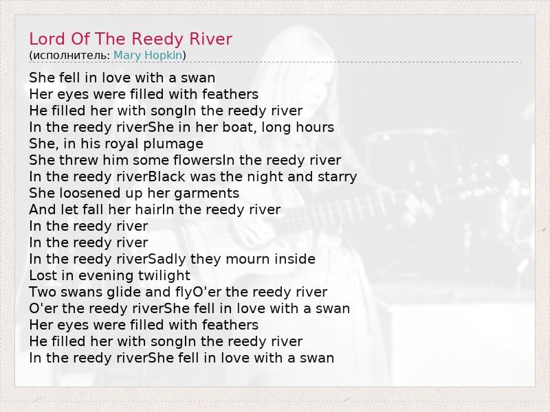 А как ты думаешь, о чем песня "Lord Of The Reedy River" ?