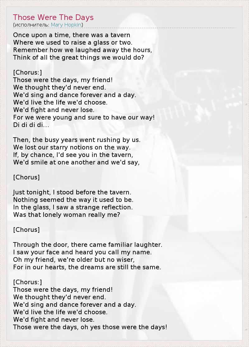 А как ты думаешь, о чем песня "Those Were The Days" ?