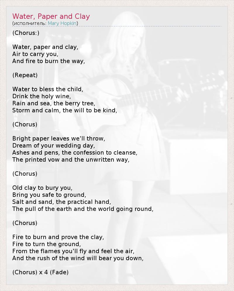 А как ты думаешь, о чем песня "Water, Paper and Clay" ?