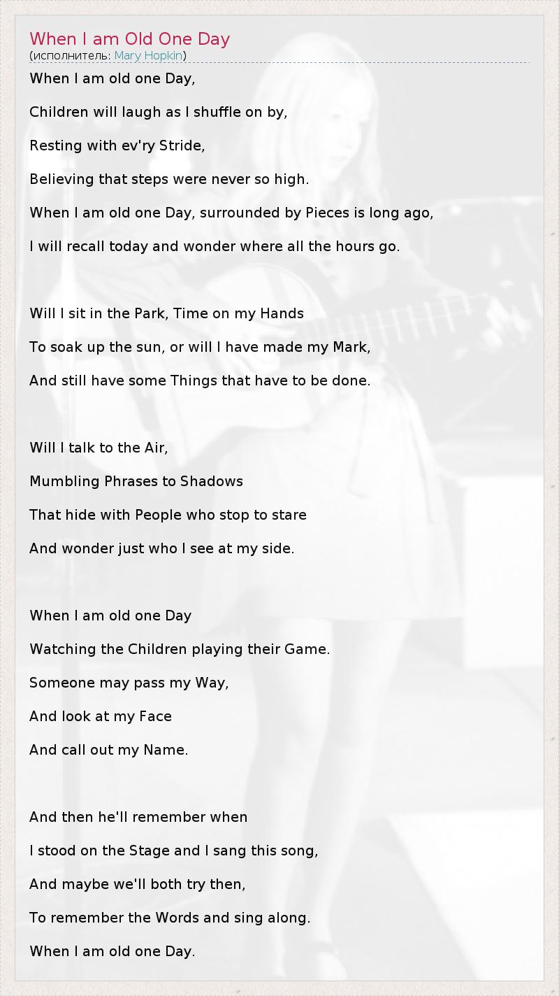 А как ты думаешь, о чем песня "When I am Old One Day" ?