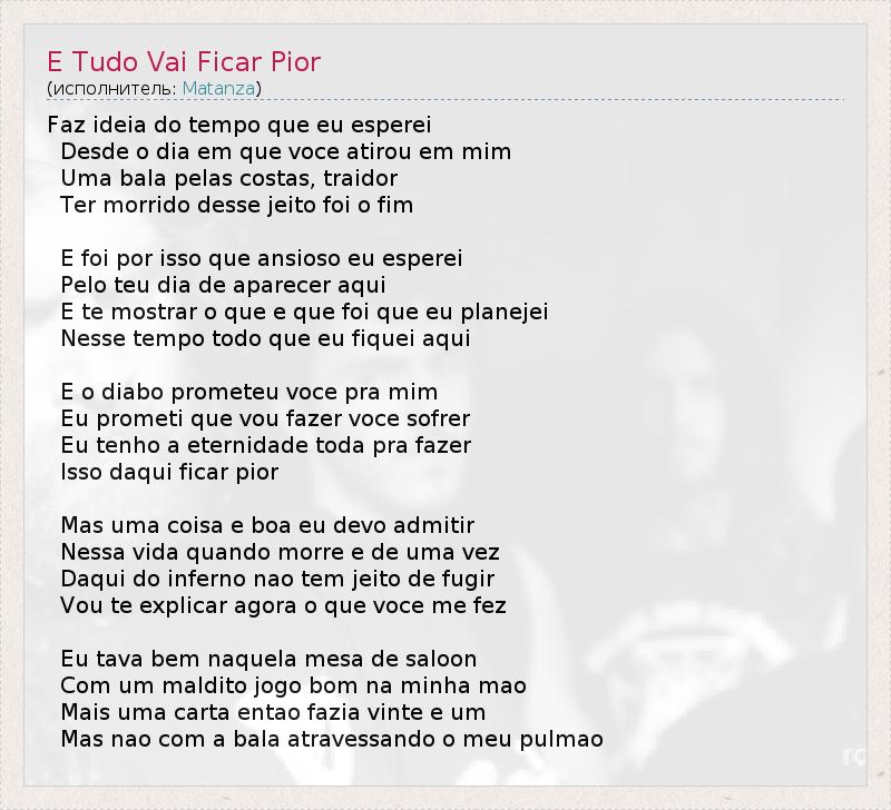 А как ты думаешь, о чем песня "E Tudo Vai Ficar Pior" ?
