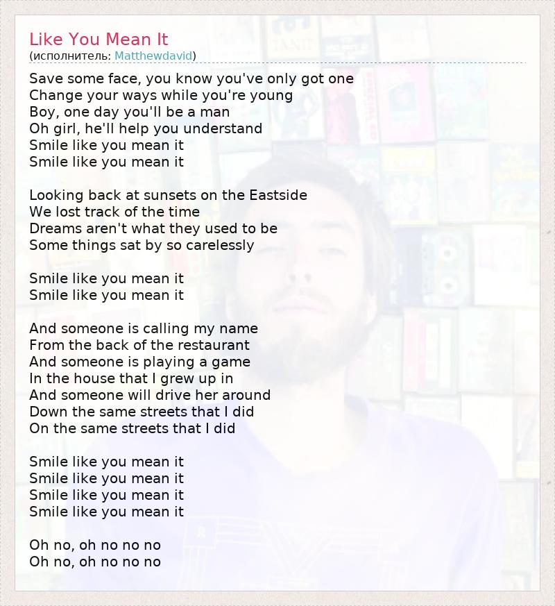 А как ты думаешь, о чем песня "Like You Mean It" ?