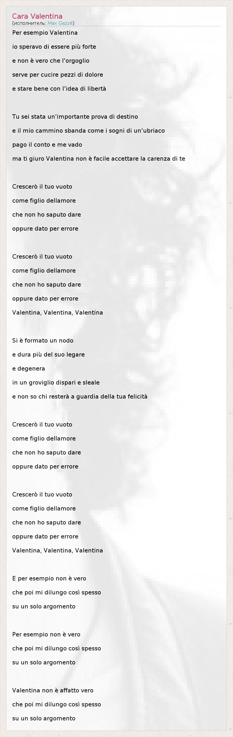 А как ты думаешь, о чем песня "Cara Valentina" ?