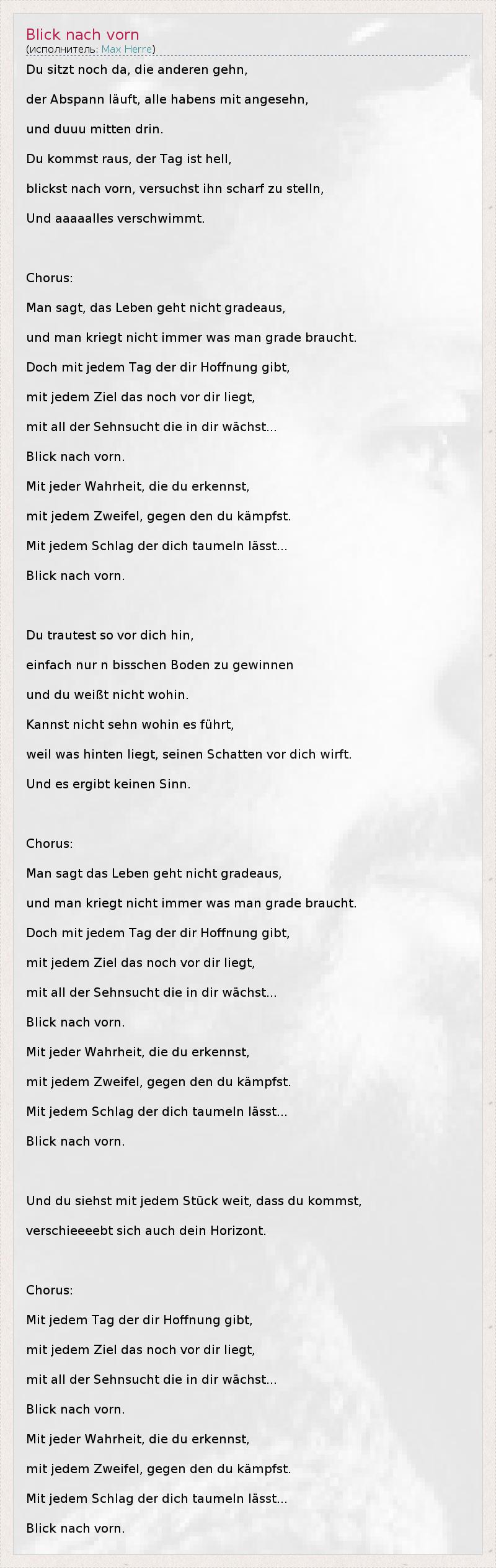 А как ты думаешь, о чем песня "Blick nach vorn" ?