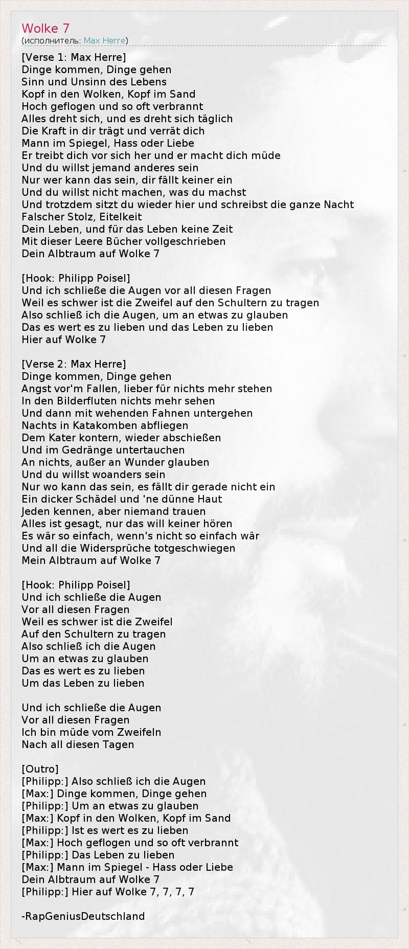 А как ты думаешь, о чем песня "Wolke 7" ?