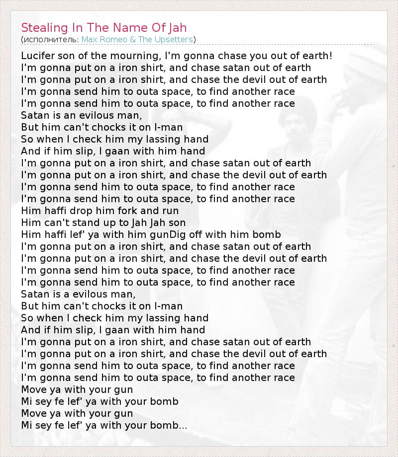 А как ты думаешь, о чем песня "Stealing In The Name Of Jah" ?