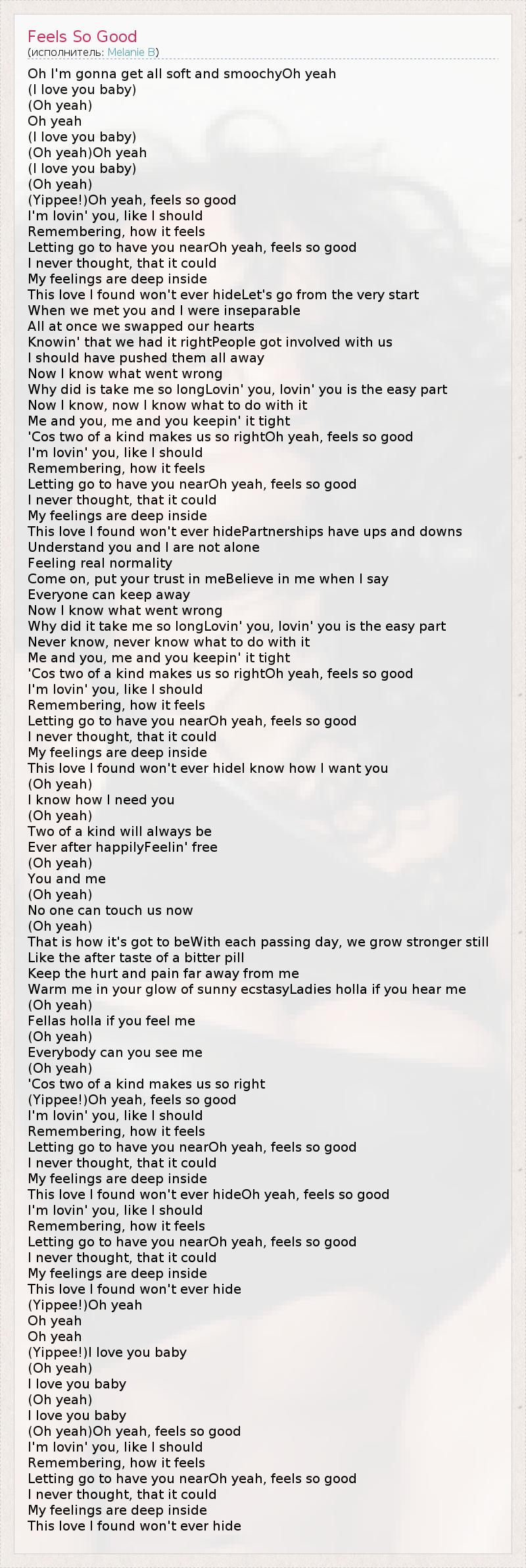 А как ты думаешь, о чем песня "Feels So Good" ?