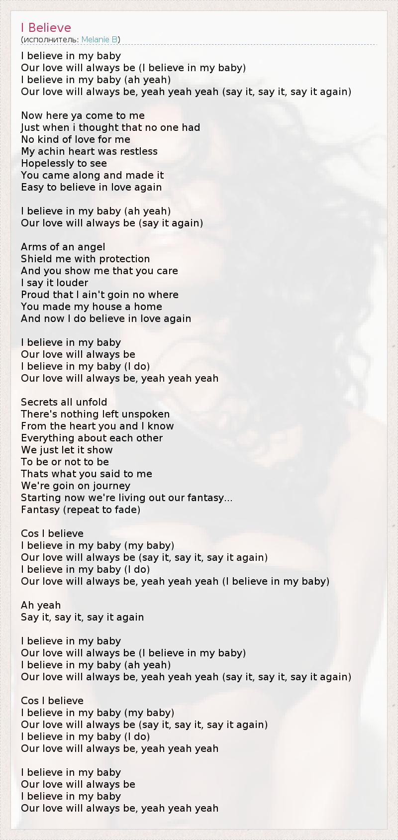 Our love will always be, yeah yeah yeah (I believe in my baby)