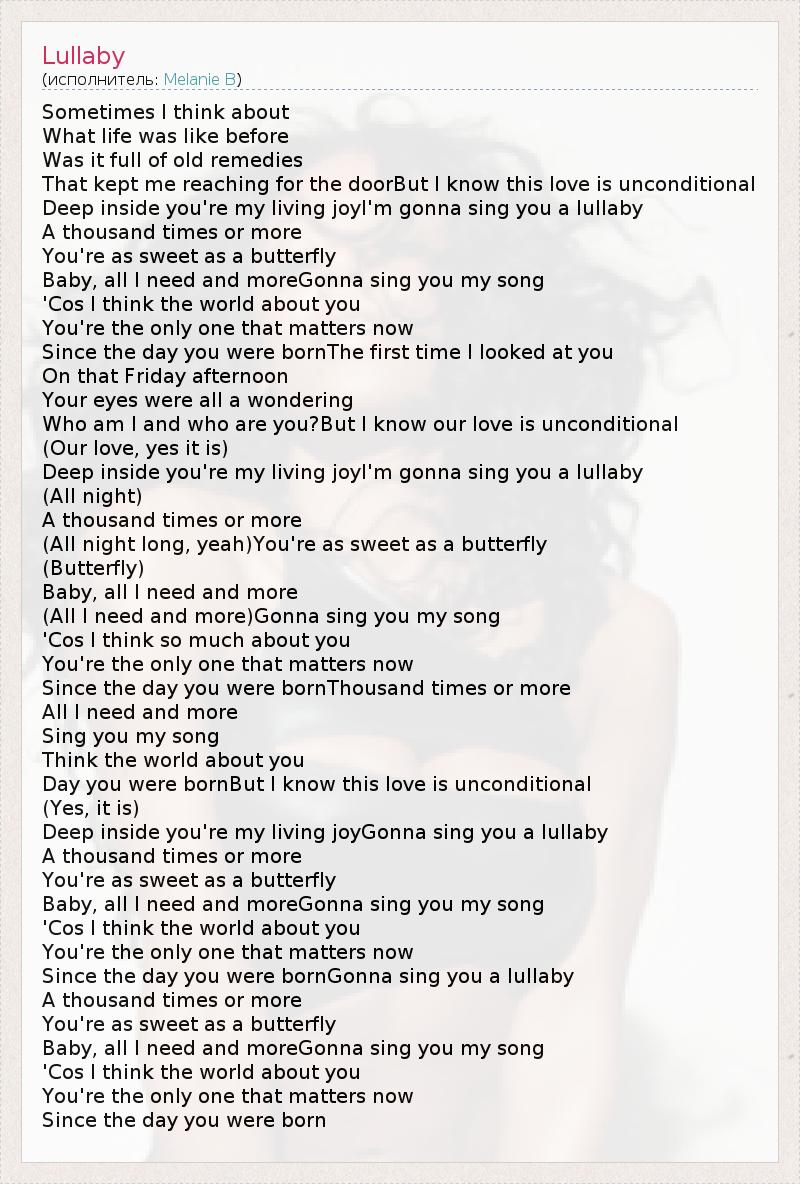 Deep inside you're my living joyI'm gonna sing you a lullaby