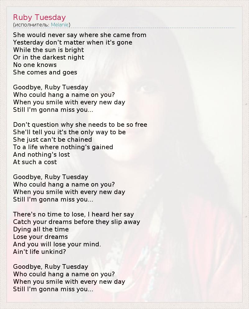 А как ты думаешь, о чем песня "Ruby Tuesday" ?