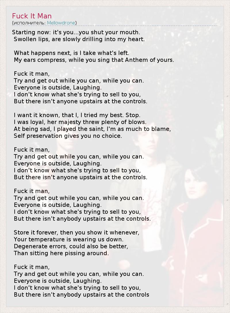 А как ты думаешь, о чем песня "Fuck It Man" ?