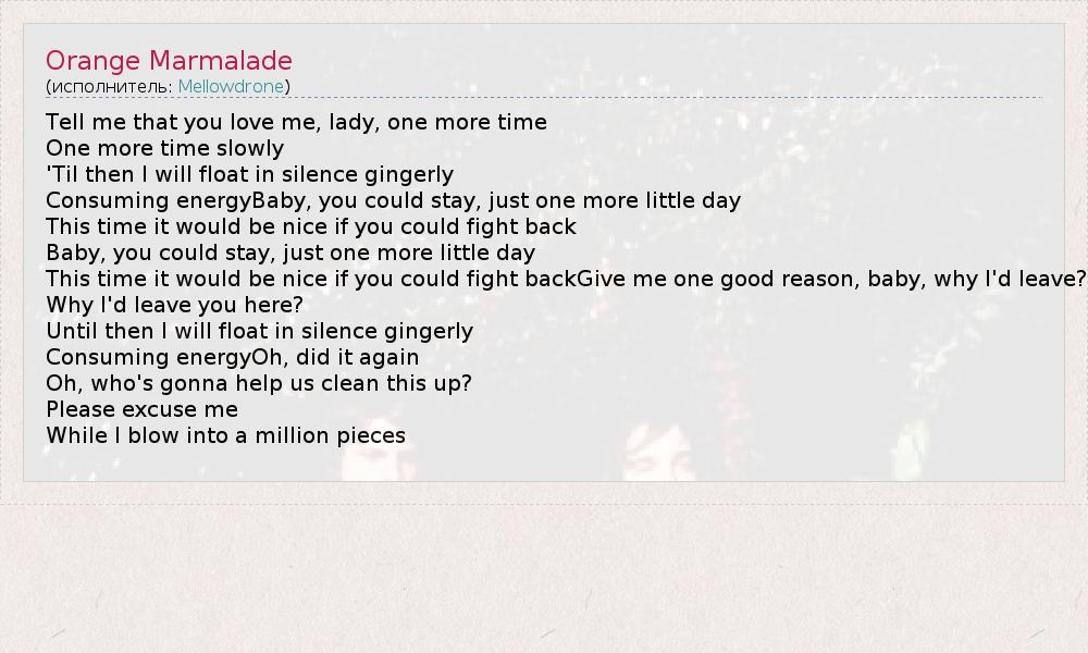 А как ты думаешь, о чем песня "Orange Marmalade" ?