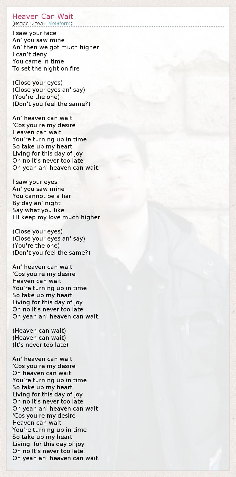 А как ты думаешь, о чем песня "Heaven Can Wait" ?