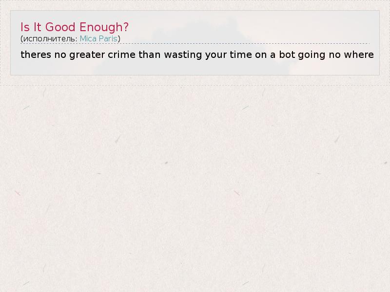 А как ты думаешь, о чем песня "Is It Good Enough?" ?
