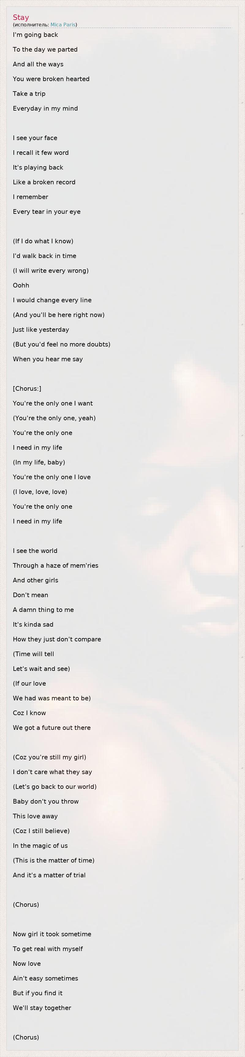 А как ты думаешь, о чем песня "Stay" ?