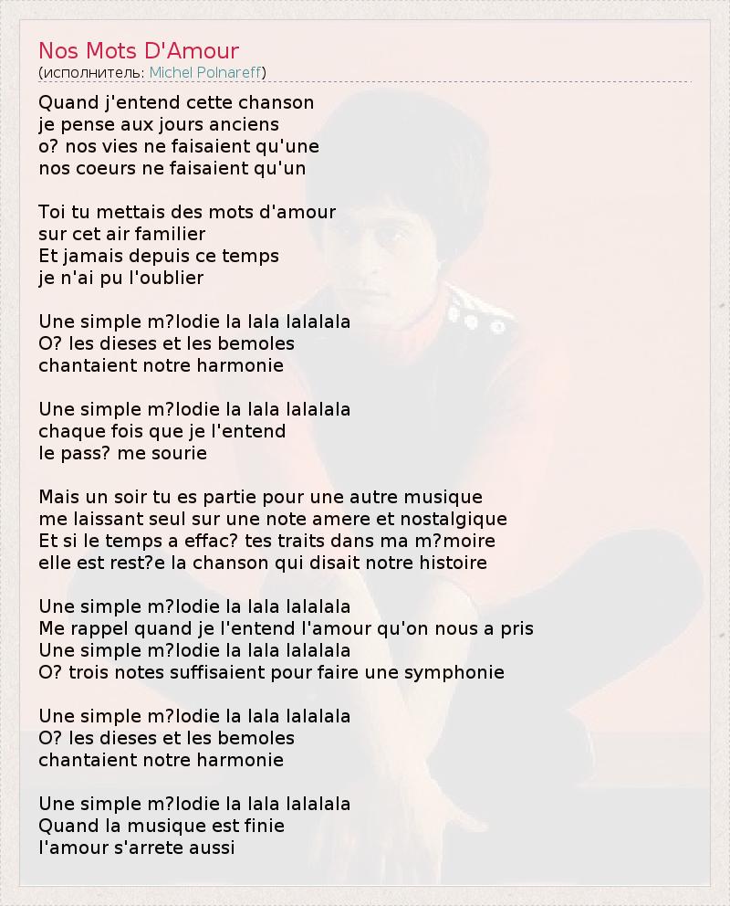 А как ты думаешь, о чем песня "Nos Mots D'Amour" ?