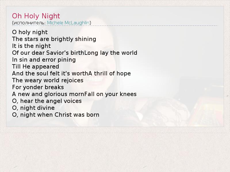 А как ты думаешь, о чем песня "Oh Holy Night" ?