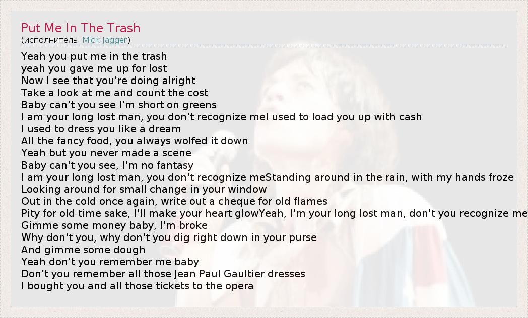 А как ты думаешь, о чем песня "Put Me In The Trash" ?