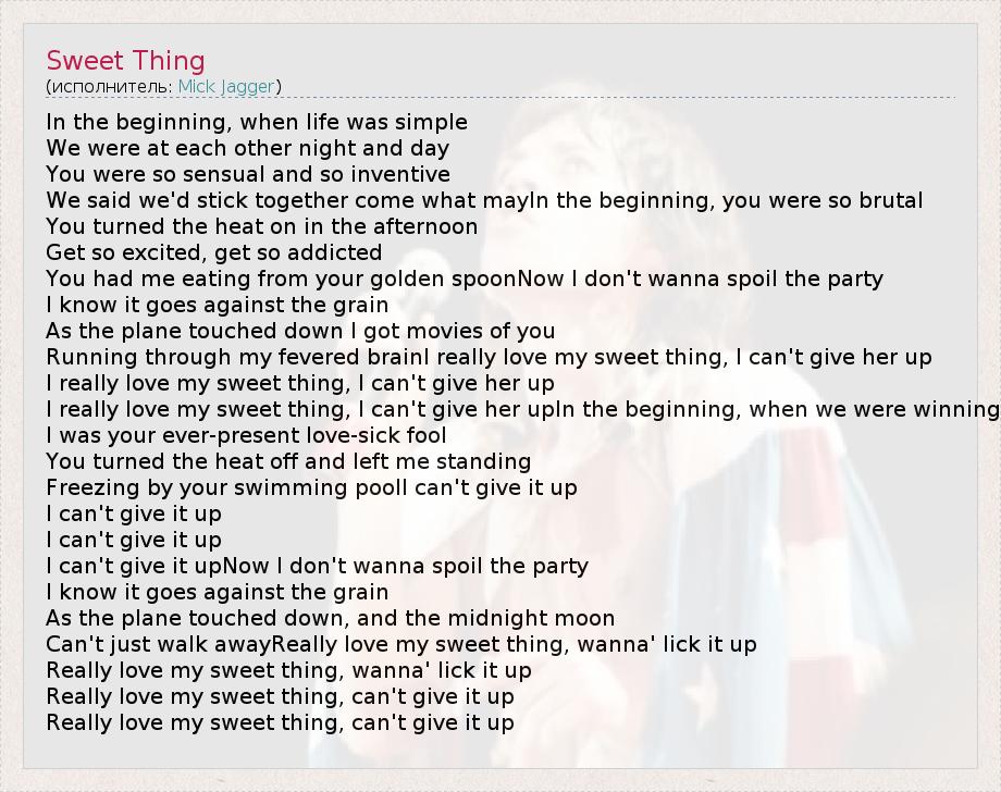 А как ты думаешь, о чем песня "Sweet Thing" ?