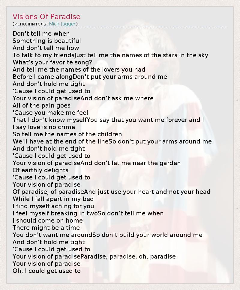 А как ты думаешь, о чем песня "Visions Of Paradise" ?
