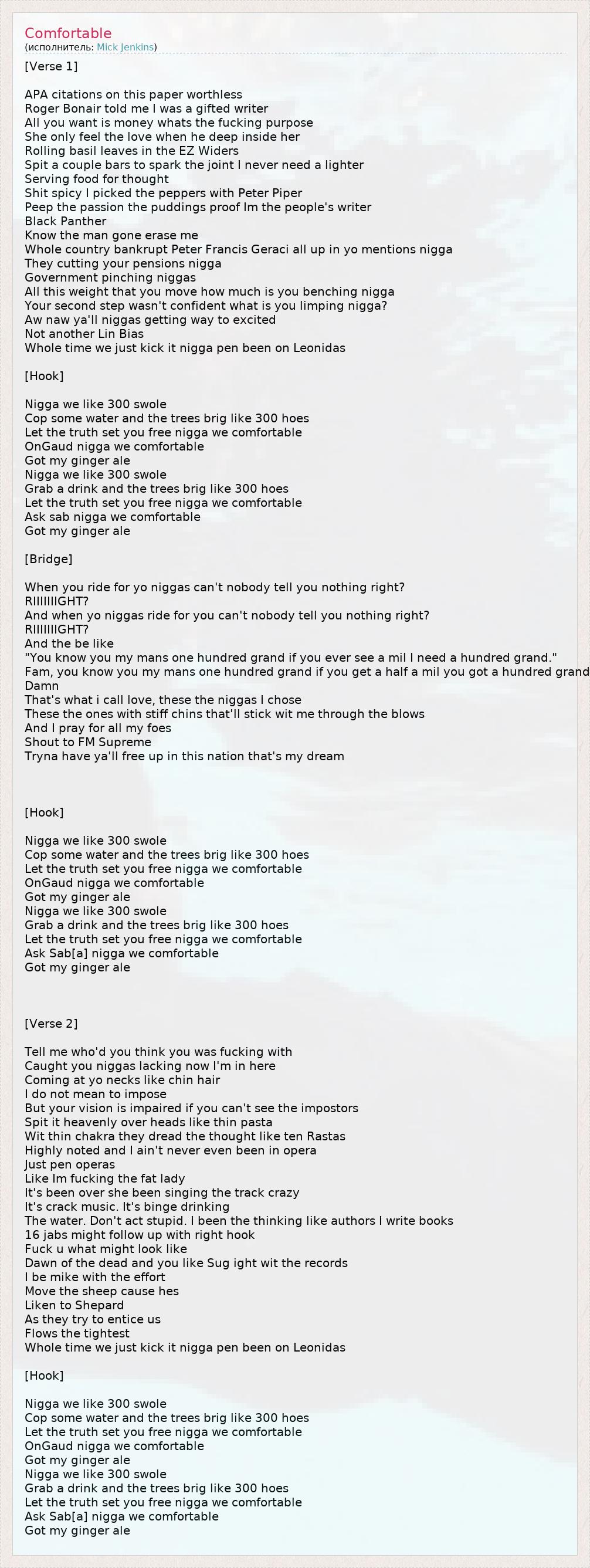 Ask sab nigga we comfortable