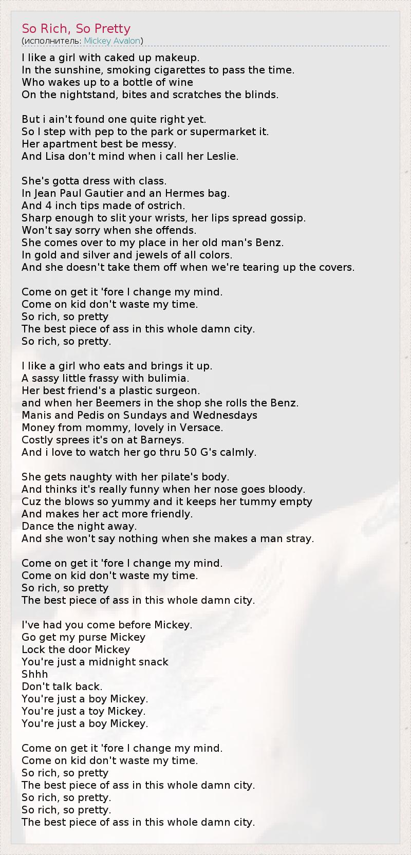 А как ты думаешь, о чем песня "So Rich, So Pretty" ?