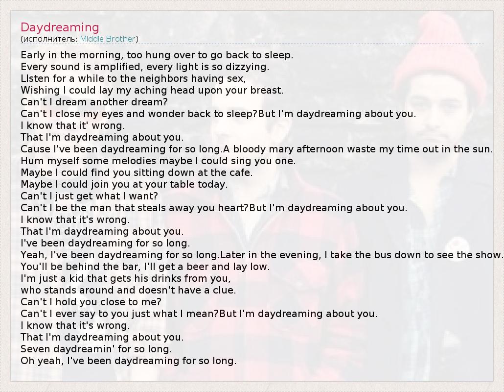 А как ты думаешь, о чем песня "Daydreaming" ?