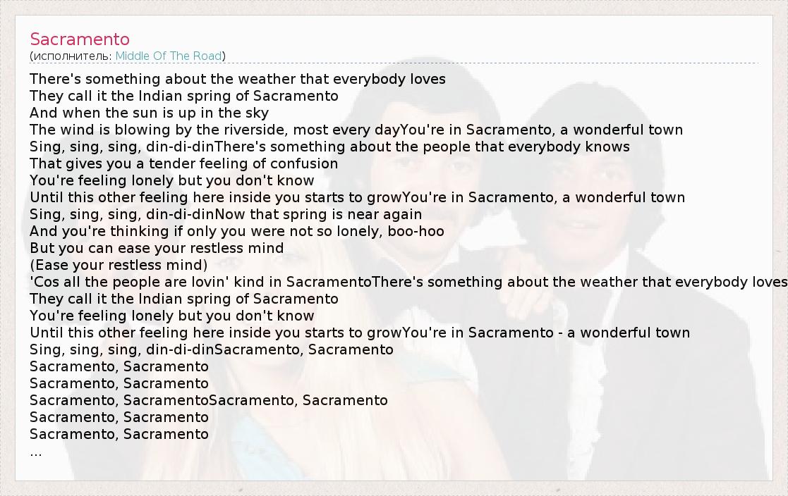 А как ты думаешь, о чем песня "Sacramento" ?