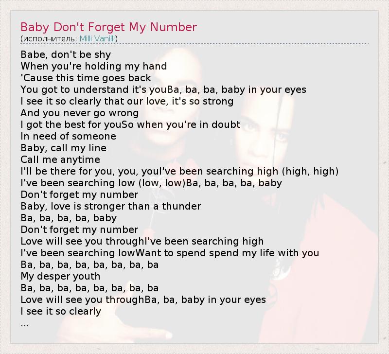 ГлавнаяИсполнителиMilli VanilliBaby Don't Forget My Number