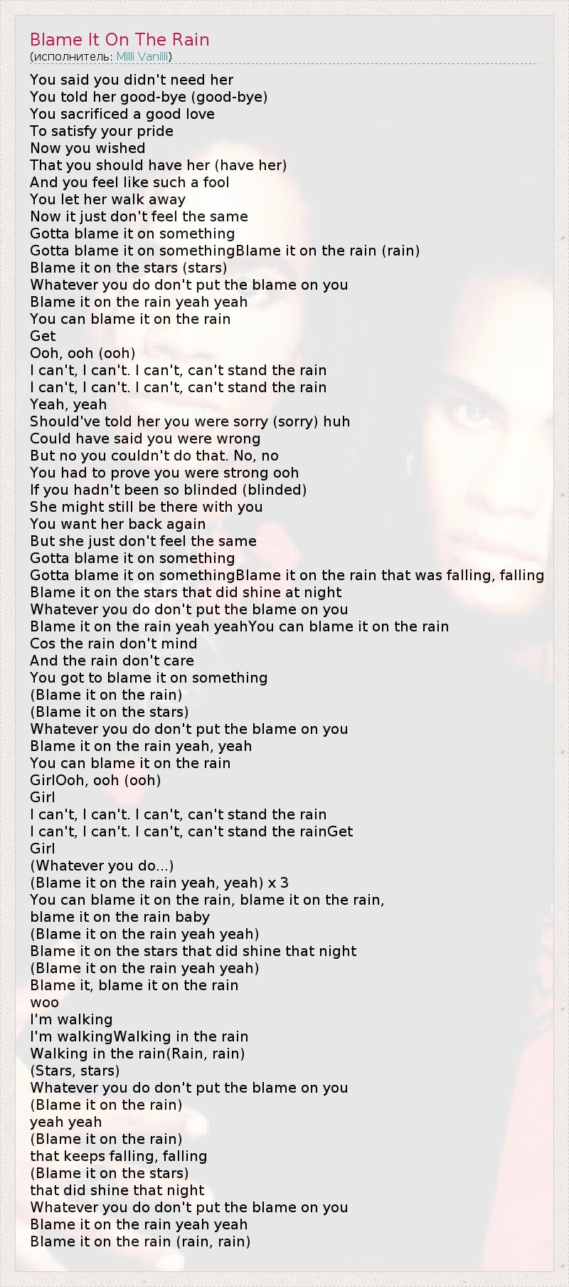 А как ты думаешь, о чем песня "Blame It On The Rain" ?