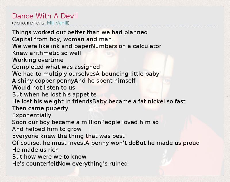 А как ты думаешь, о чем песня "Dance With A Devil" ?