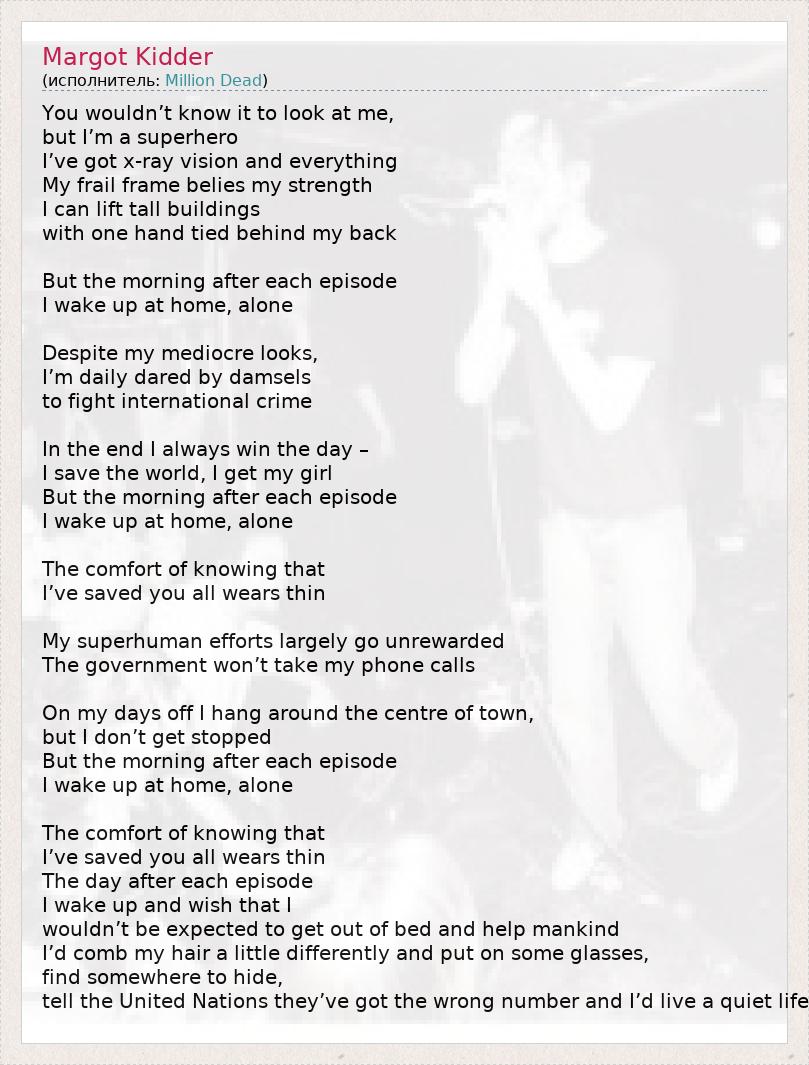 А как ты думаешь, о чем песня "Margot Kidder" ?