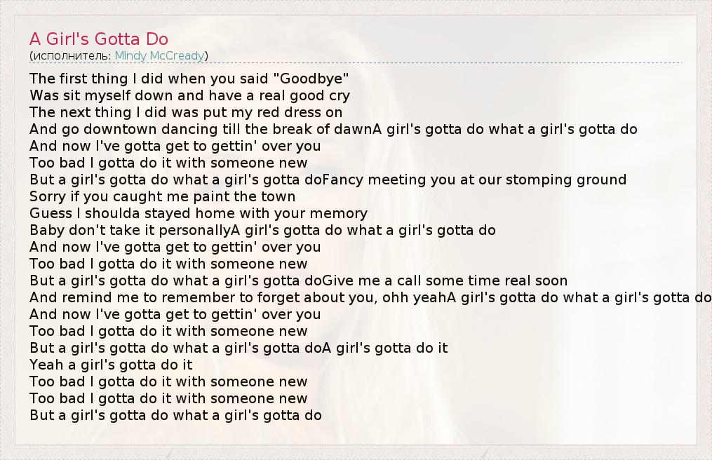 А как ты думаешь, о чем песня "A Girl's Gotta Do" ?