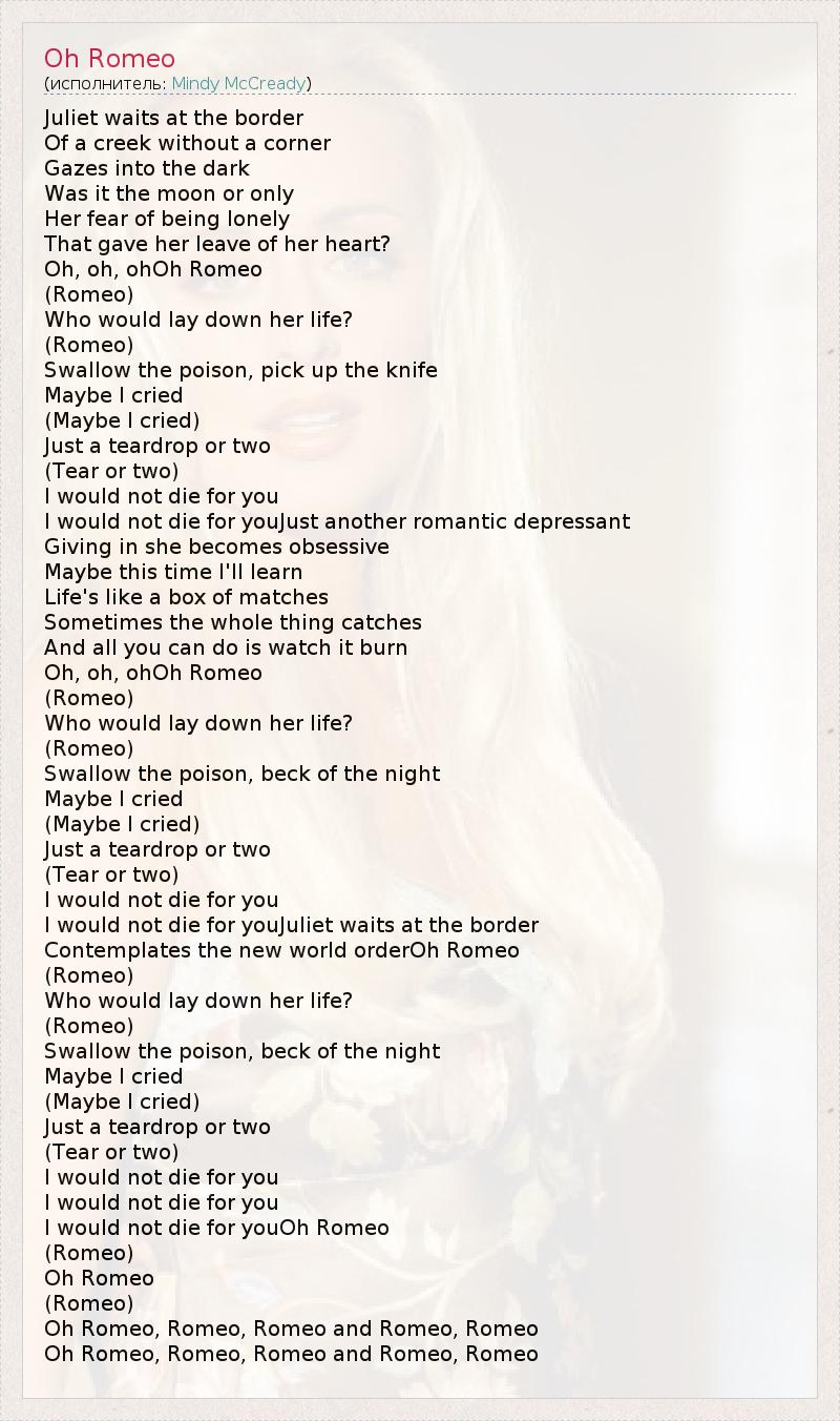 А как ты думаешь, о чем песня "Oh Romeo" ?