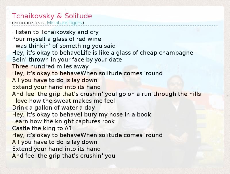 А как ты думаешь, о чем песня "Tchaikovsky & Solitude" ?