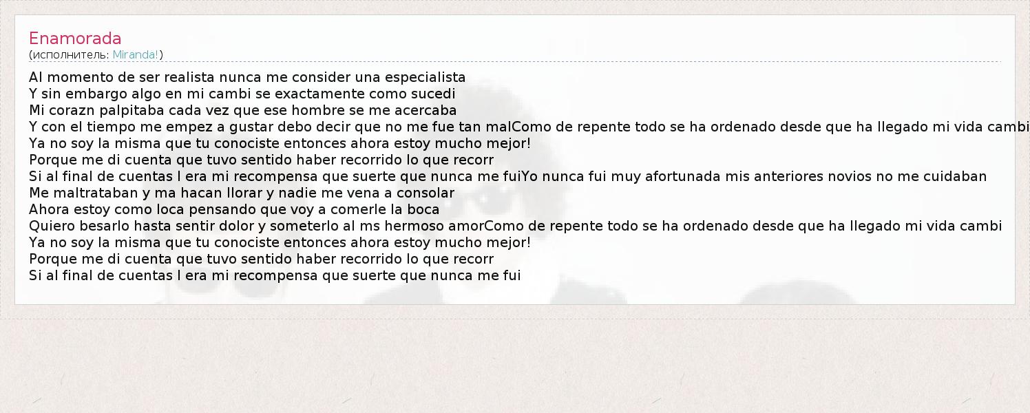 Al momento de ser realista nunca me consider una especialista Y sin embargo algo en mi cambi se exactamente como sucedi Mi corazn palpitaba cada vez que ese hombre se me acercaba Y con el tiempo me empez a gustar debo decir que no me fue tan malComo de repente todo se ha ordenado desde que ha llegado mi vida cambi Ya no soy la misma que tu conociste entonces ahora estoy mucho mejor! Porque me di cuenta que tuvo sentido haber recorrido lo que recorr Si al final de cuentas l era mi recompensa que suerte que nunca me fuiYo nunca fui muy afortunada mis anteriores novios no me cuidaban Me maltrataban y ma hacan llorar y nadie me vena a consolar Ahora estoy como loca pensando que voy a comerle la boca Quiero besarlo hasta sentir dolor y someterlo al ms hermoso amorComo de repente todo se ha ordenado desde que ha llegado mi vida cambi Ya no soy la misma que tu conociste entonces ahora estoy mucho mejor! Porque me di cuenta que tuvo sentido haber recorrido lo que recorr Si al final de cuentas l era mi recompensa que suerte que nunca me fui