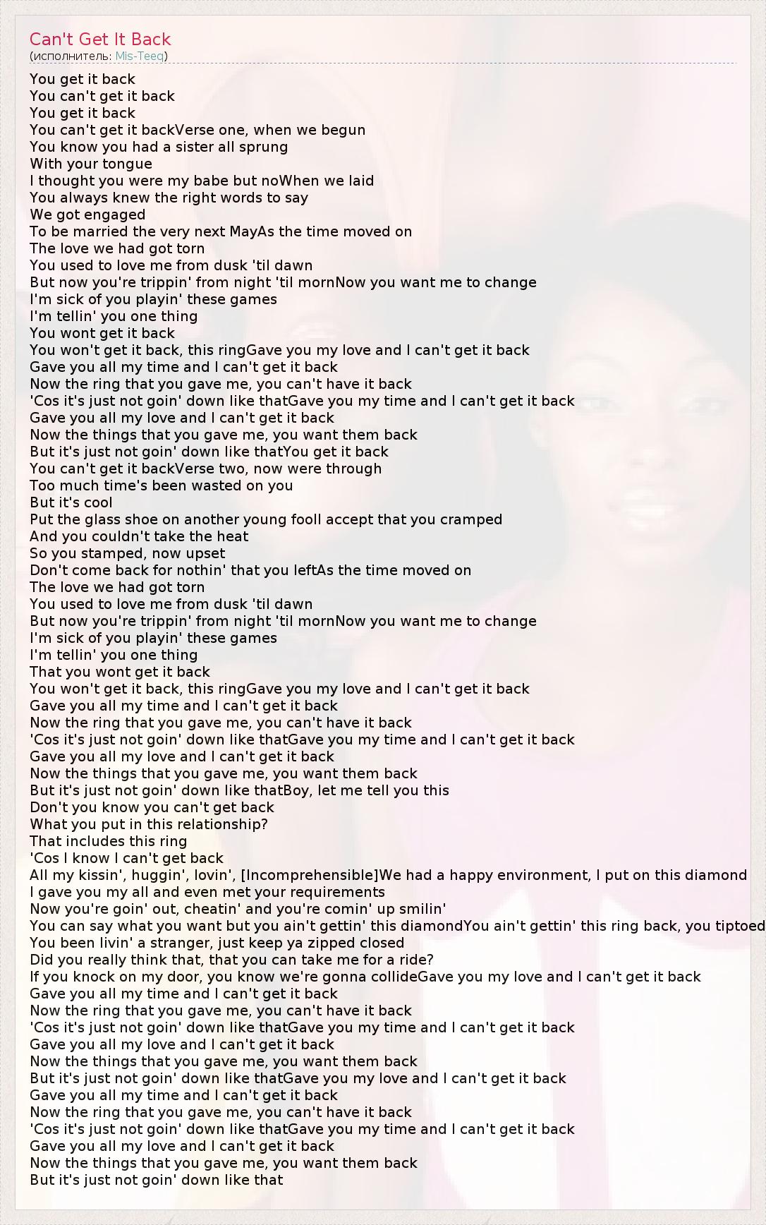 А как ты думаешь, о чем песня "Can't Get It Back" ?