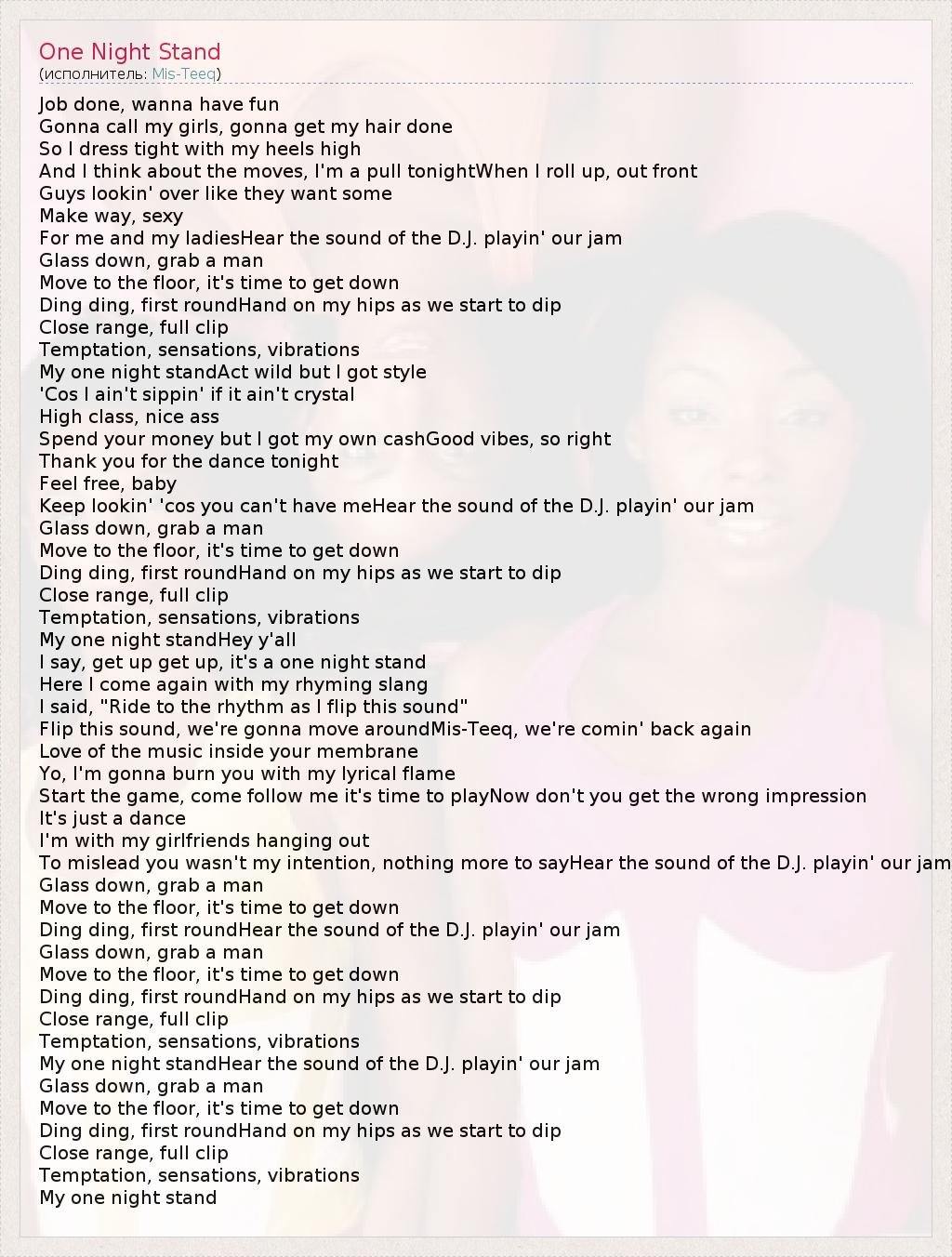 А как ты думаешь, о чем песня "One Night Stand" ?