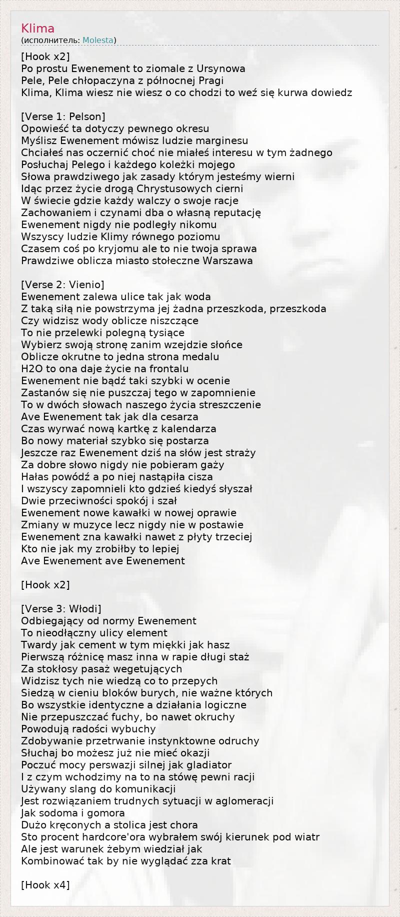 Klima, Klima wiesz nie wiesz o co chodzi to weź się kurwa dowiedz