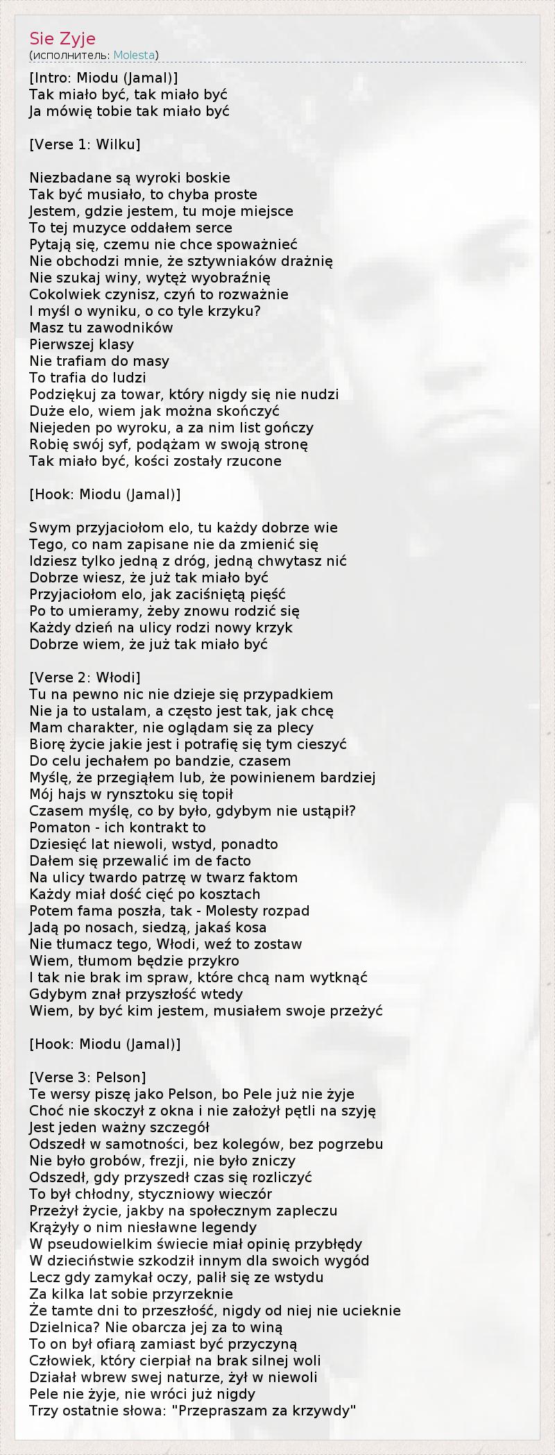 А как ты думаешь, о чем песня "Sie Zyje" ?