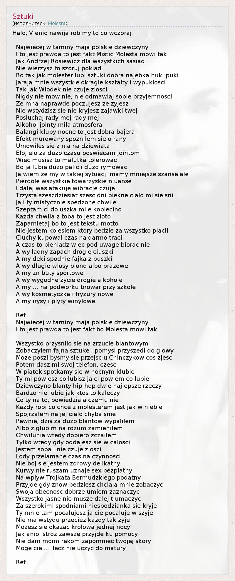 А как ты думаешь, о чем песня "Sztuki" ?