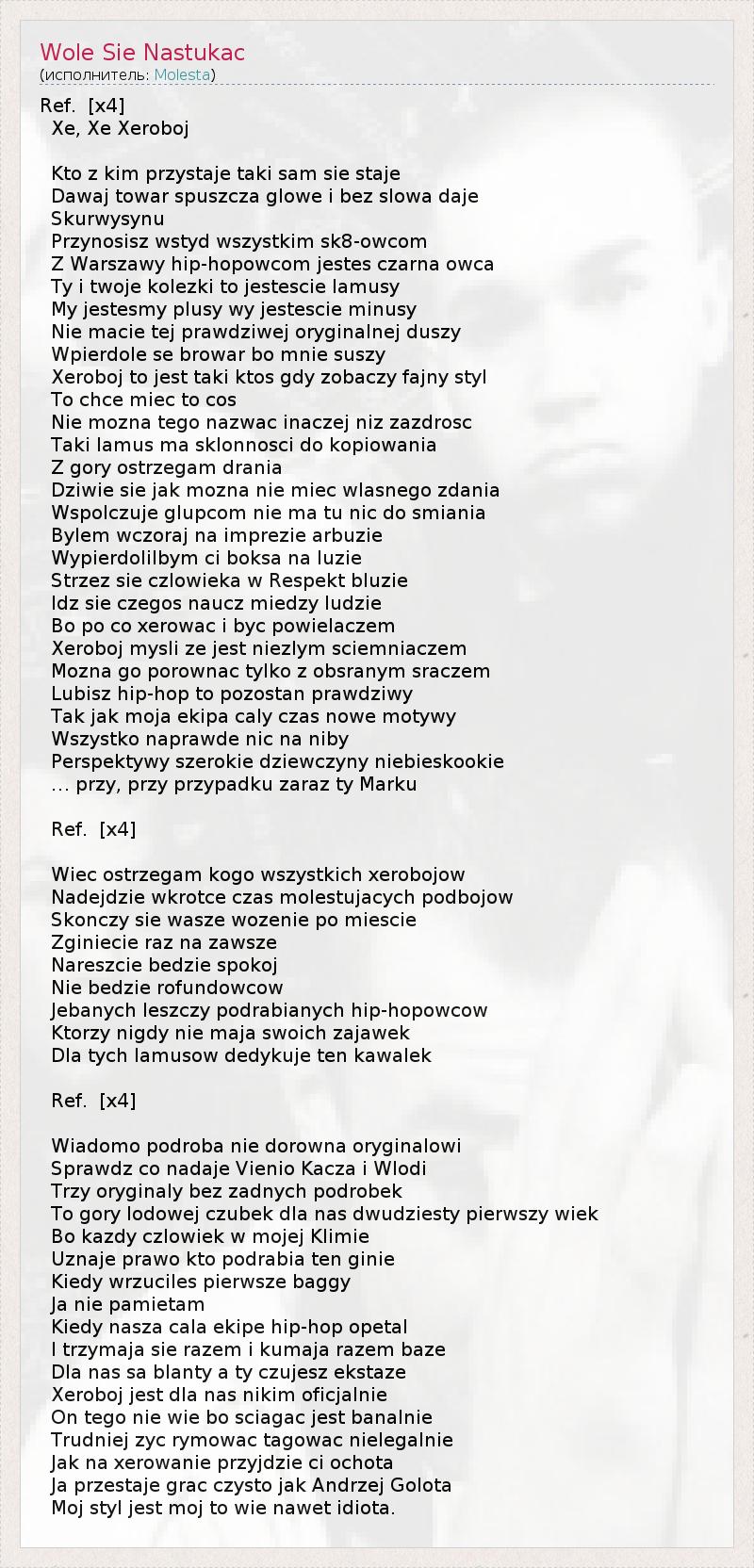 А как ты думаешь, о чем песня "Wole Sie Nastukac" ?