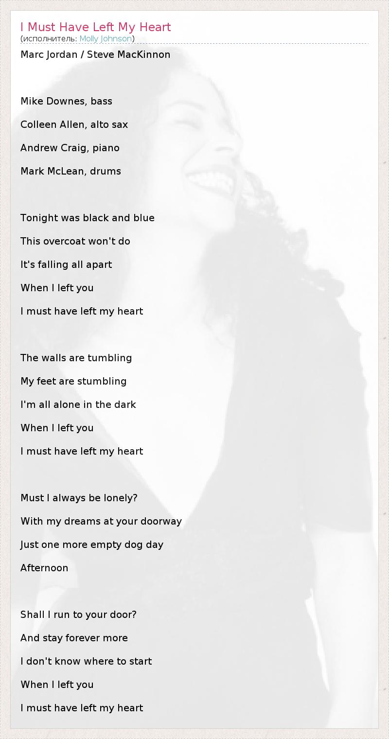 А как ты думаешь, о чем песня "I Must Have Left My Heart" ?