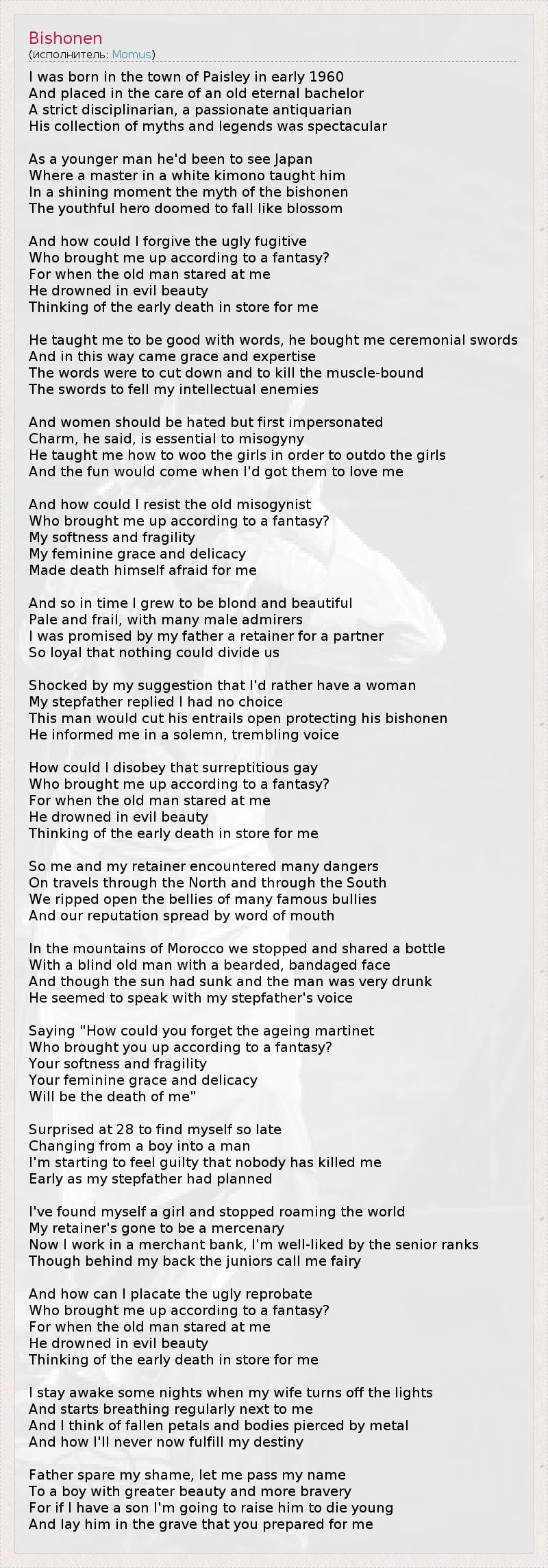 Это интересно:Nick Currie (born 11 February 1960 in Paisley, Scotland), more popularly known under the artist name Momus (after the Greek god of mockery), is a songwriter, blogger and former journalist for Wired. Most of his songs are self-referential and many could be classified as postmodern.For more than twenty five years he has been releasing, to marginal commercial and critical success, albums on labels in the United Kingdom, the United States, and Japan. In his lyrics and his other writing he makes seemingly random use of decontextualized pieces of continental (mostly French) philosophy, and has built up a personal world he says is "dominated by values like diversity, orientalism, and a respect... продолжение