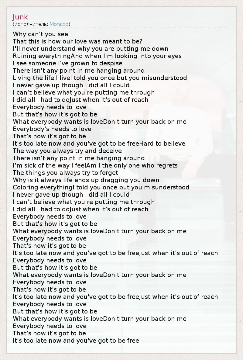 А как ты думаешь, о чем песня "Junk" ?