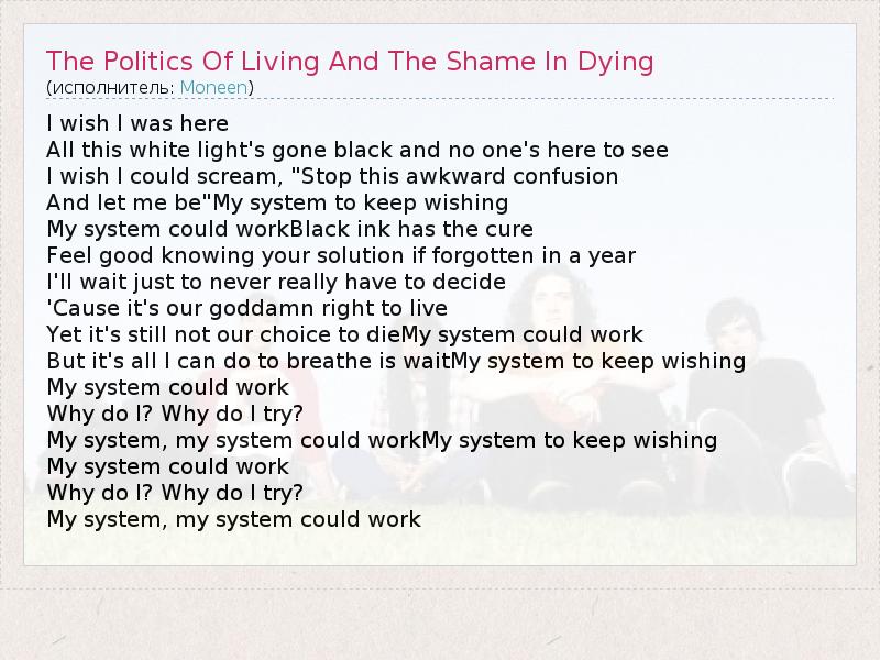 А как ты думаешь, о чем песня "The Politics Of Living And The Shame In Dying" ?
