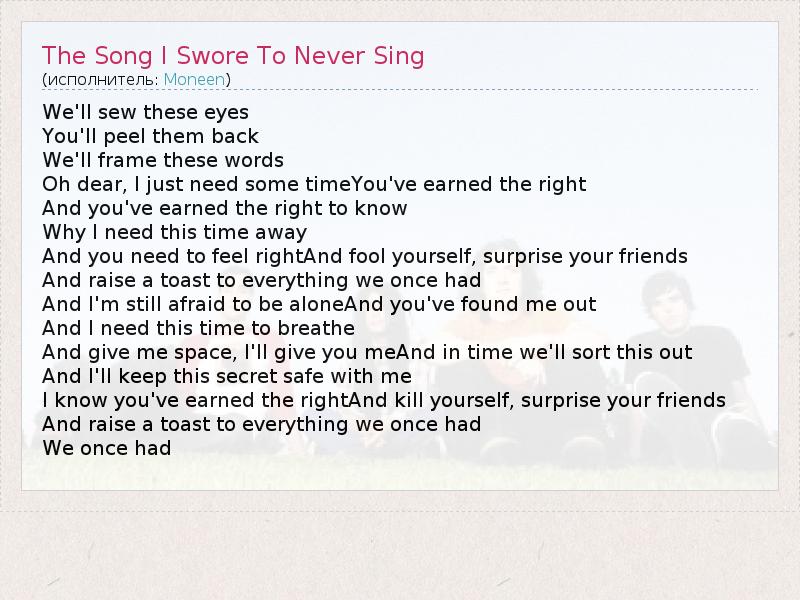 А как ты думаешь, о чем песня "The Song I Swore To Never Sing" ?